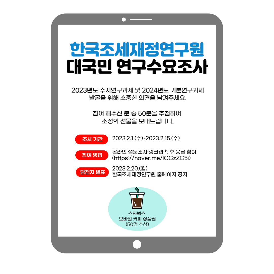 국가발전과 사회통합을 위한 증거기반조세 및 재정 정책 연구의 산실이 될 수 있도록 노력하겠습니다.