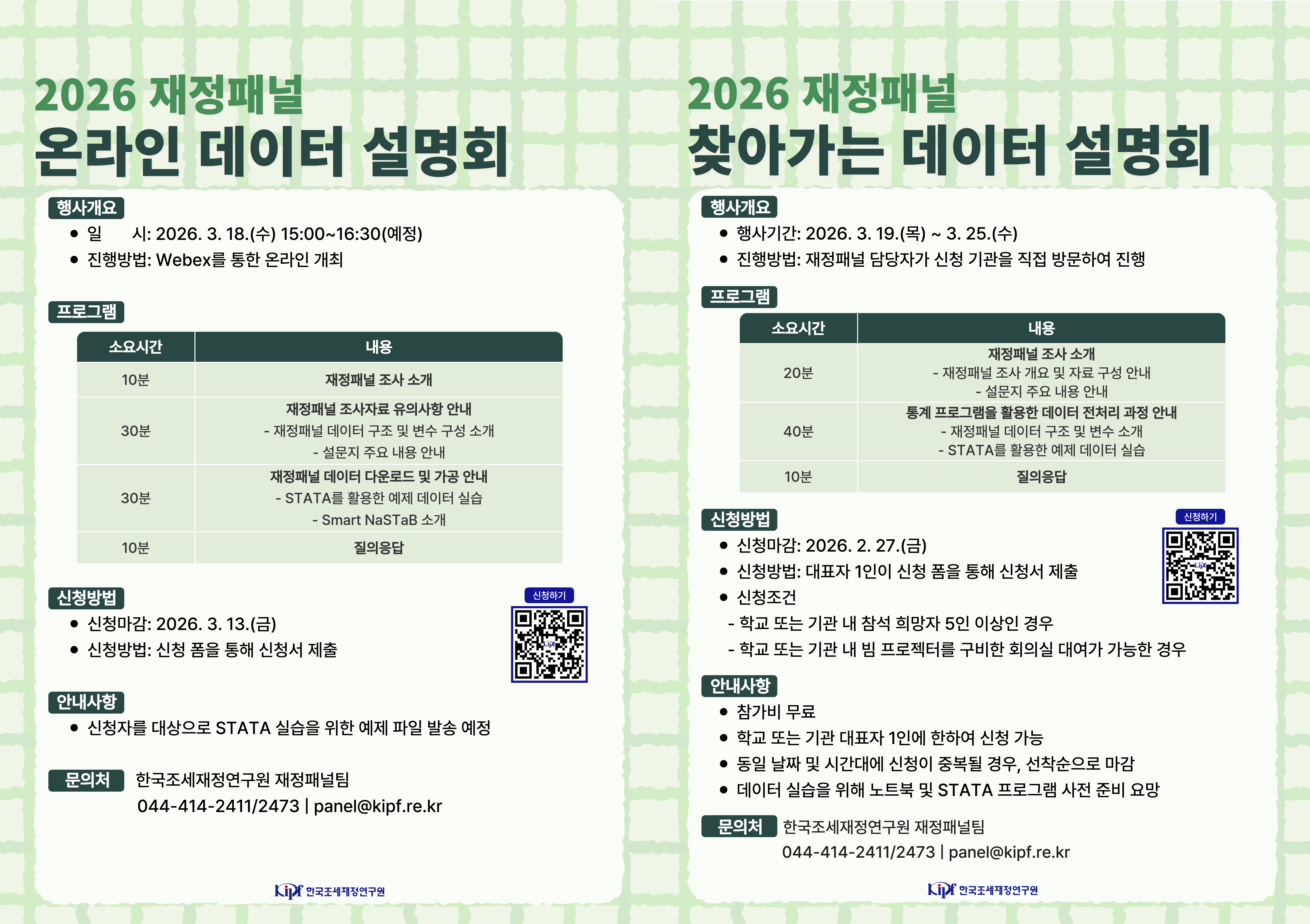 건실하고 효율적인 재정 운영은 알뜰한 나라살림의 주춧돌 한국조세재정연구원 재정패널조사