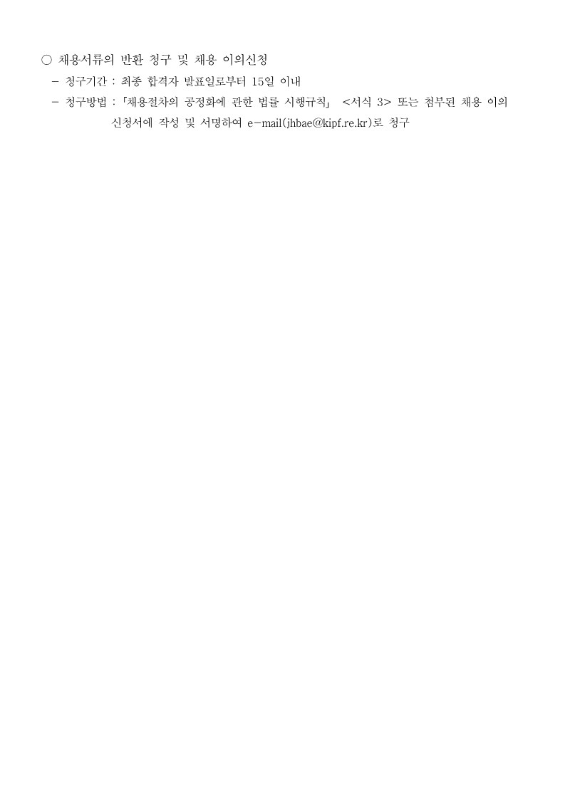 문의처 : 인사혁신팀 (044-414-2168 / jhbae@kipf.re.kr)