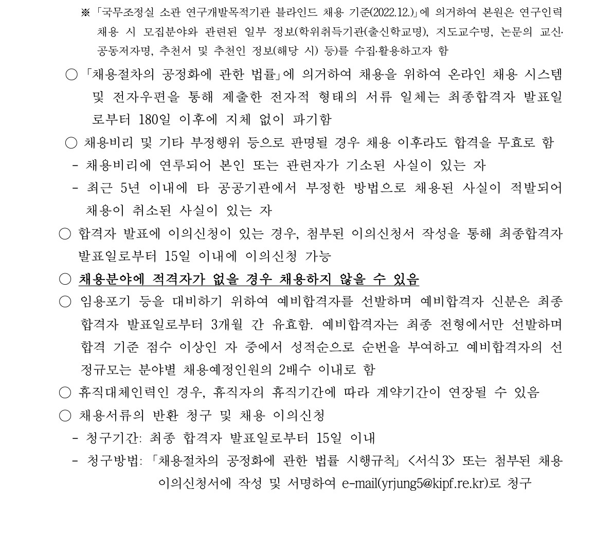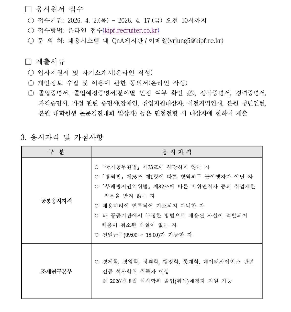 문의처 : 인사혁신팀 (044-414-2168 / jhbae@kipf.re.kr)